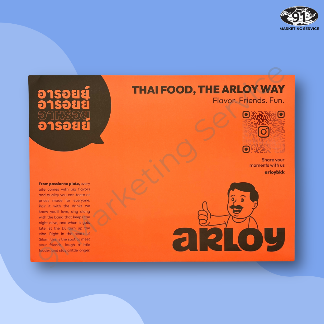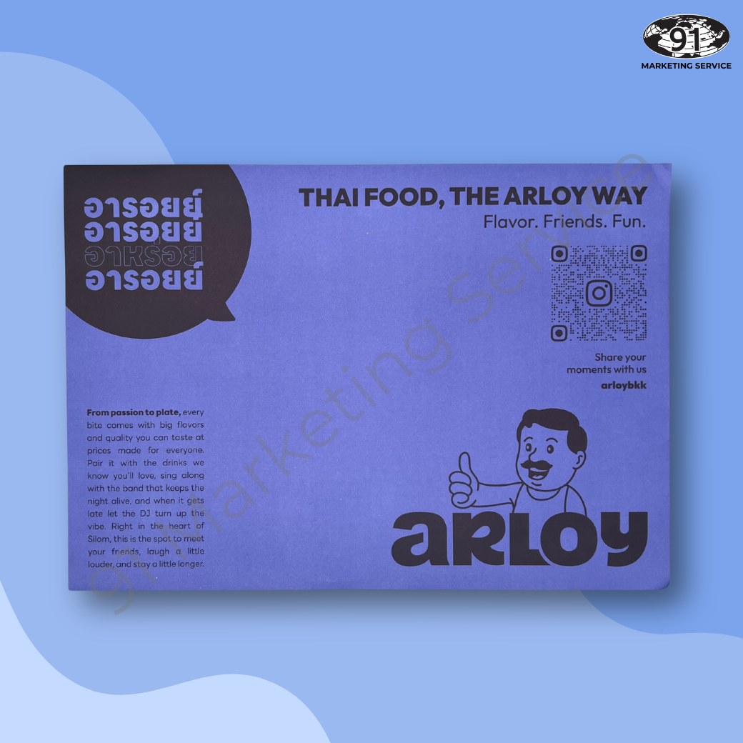 กระดาษรองจานพิมพ์โลโก้ เพิ่มความน่าสนใจและน่าจดจำให้กับโต๊ะทานอาหาร สามารถสร้างความแตกต่างให้กับประสบการณ์ของลูกค้าได้ด้วยลายพิมพ์ต่างๆ เช่น ข่าวสาร แบรนด์ โปรโมชั่น อีกทั้ง ยังช่วยให้การเก็บกวาดและทำความสะอาดโต๊ะทานอาหารได้อย่างรวดเร็วและสะดวกขึ้น