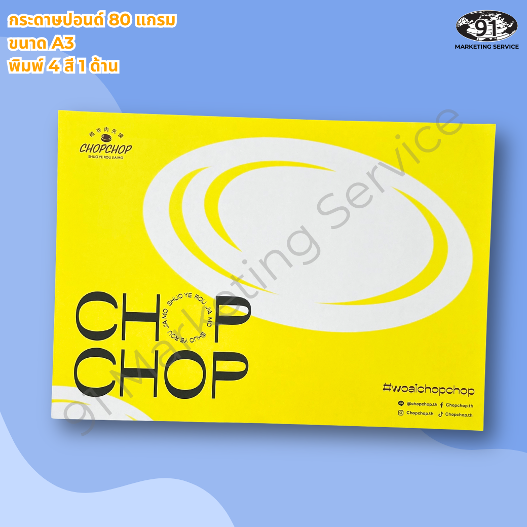 กระดาษปอนด์ความหนา 70-80 แกรม เป็นกระดาษเนื้อขาวซึ่งเป็นที่นิยมในการนำมาผลิตกระดาษรองจาน ให้สีที่โดดเด่น ชัดเจน รายละเอียดมีความคมชัด ทำให้ข้อมูลและโลโก้มีความเด่นชัด