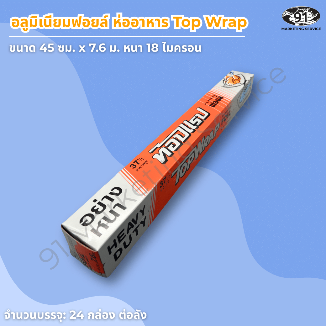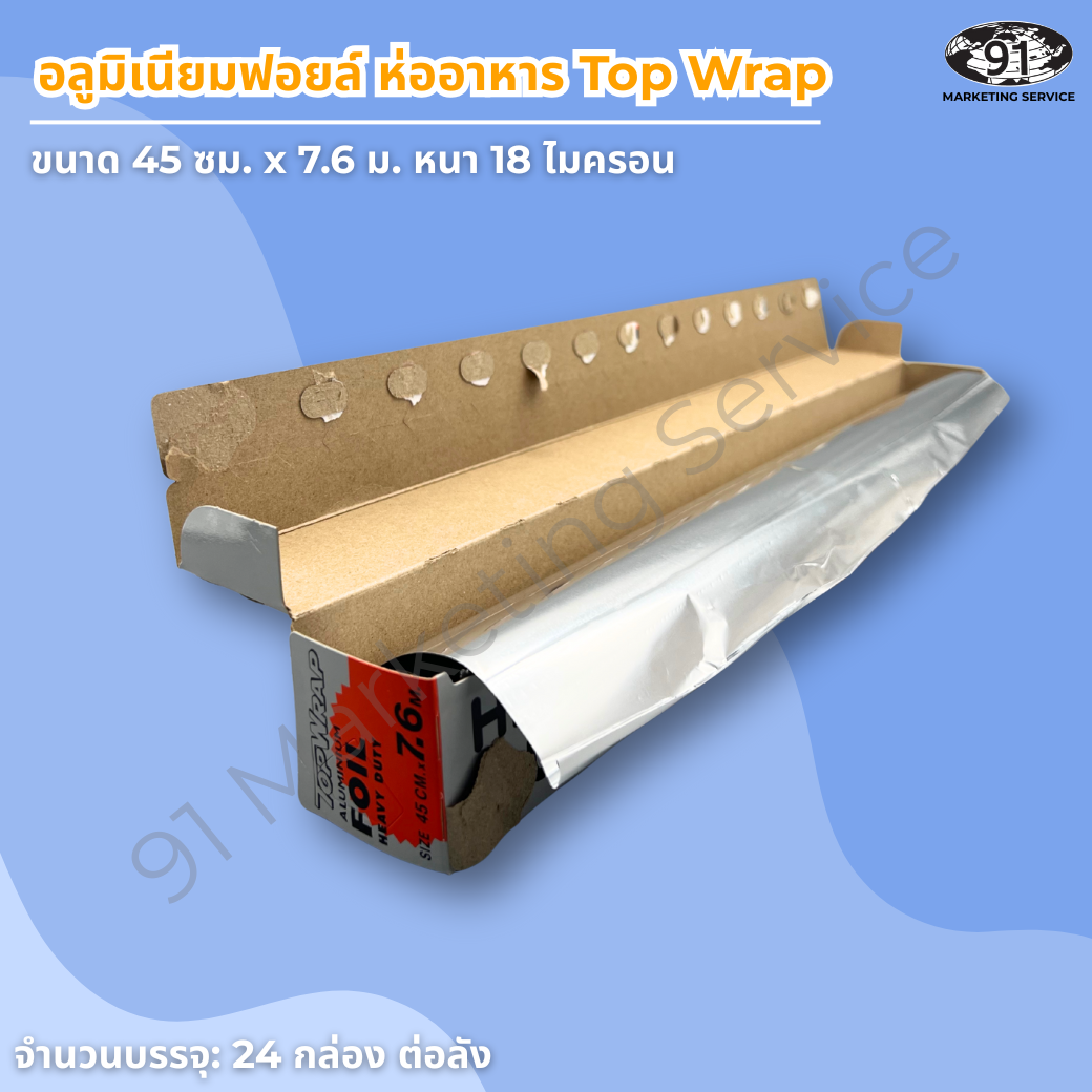 อลูมิเนียมฟอยล์ 18 ไมครอน ขนาด 45 ซม. × 7.6 ม. บรรจุ 24 กล่อง